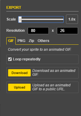 Make sure to export your work as GIFs when submitting to tournaments. All GIFs must be exported at x1 scale (You can work with sprite sheets, but you need to export as GIFs so use the sprite to GIF tool ).